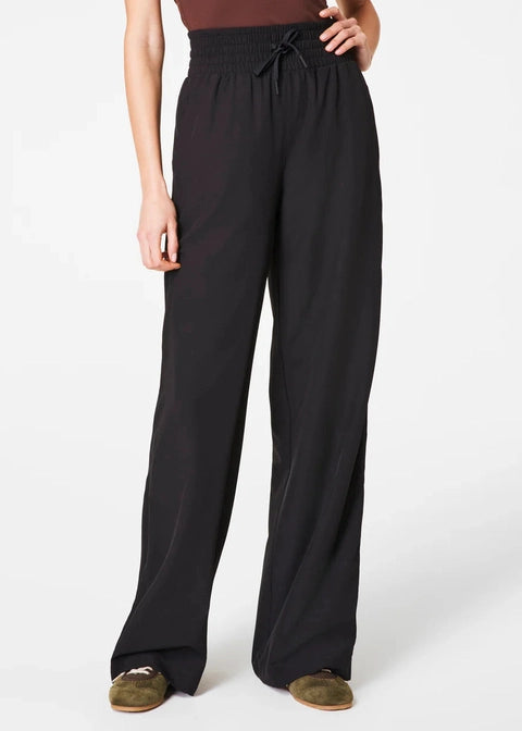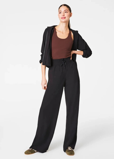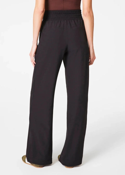 Experience ultimate comfort and style with the On The Move Wide Leg Pant. Designed with sweat-wicking, 4-way stretch fabric and an anti-static finish, these pants move effortlessly with you. The flat-front elastic waistband and adjustable drawstring offer a personalized, secure fit, while discreet pockets keep essentials handy without adding bulk. Enjoy built-in UPF 50+ protection and subtle smoothing in a high-rise, wide leg silhouette that’s perfect from warmups to weekends. Combining function and fashion, these pants are your go-to for all-day confidence and ease.