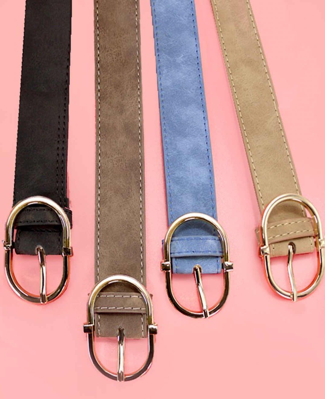 Enhance your wardrobe with our Oval Buckle Faux Leather Suede Belt. This classic chic belt features a stylish oval buckle, made with high-quality faux leather and soft suede. Perfect for adding a touch of sophistication to any outfit. Upgrade your style with this versatile accessory.