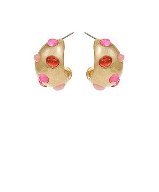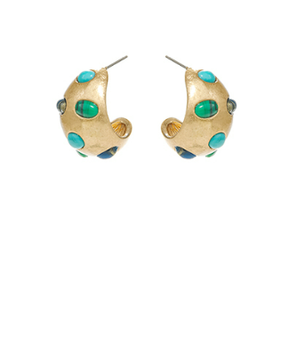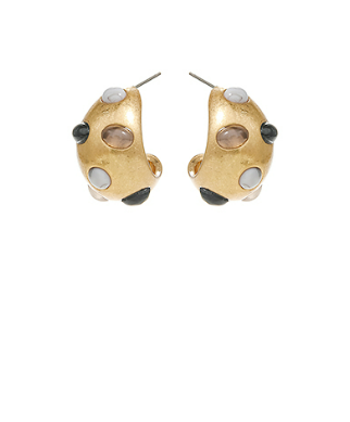 "Add a touch of vintage charm with our Paved Stone Metal Hoops. The stone accents add a unique sparkle to the small, chunky hoops, making them perfect for any occasion. Elevate your style and stand out with these timeless earrings!"
