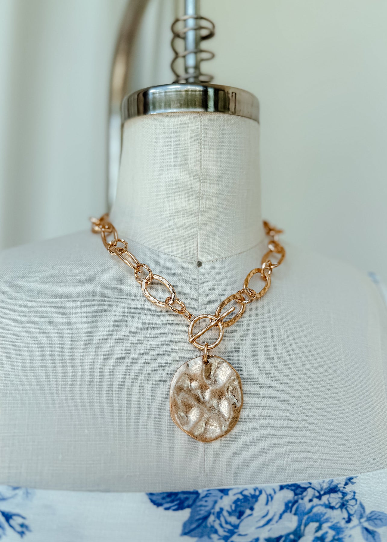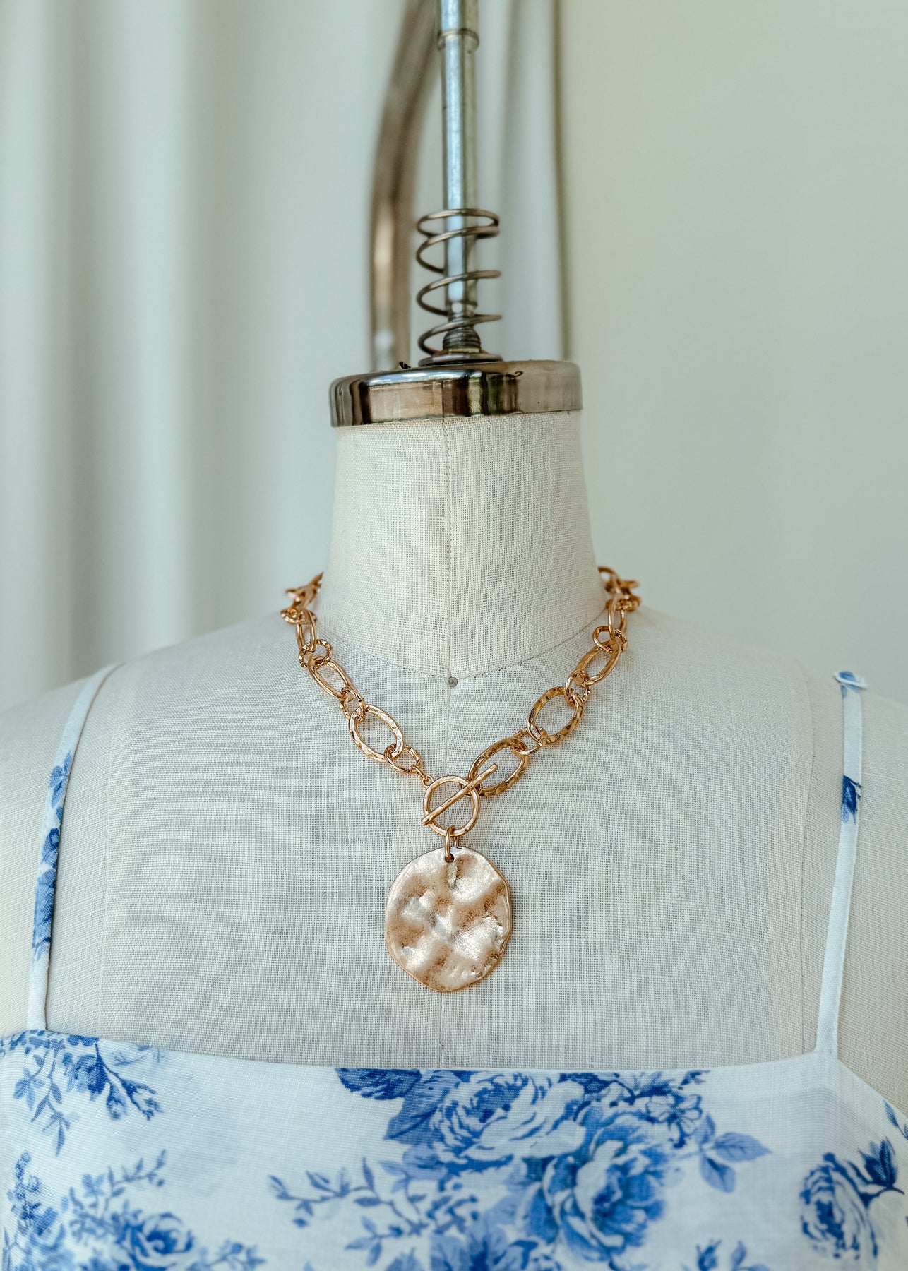 Elevate your style with the Round Textured Pendant Necklace, a striking accessory that adds subtle sophistication to any outfit. Its unique textured design catches the light beautifully, making it perfect for both everyday wear and special occasions. Crafted to complement your look effortlessly, this necklace is a timeless piece that enhances your elegance with minimal effort.