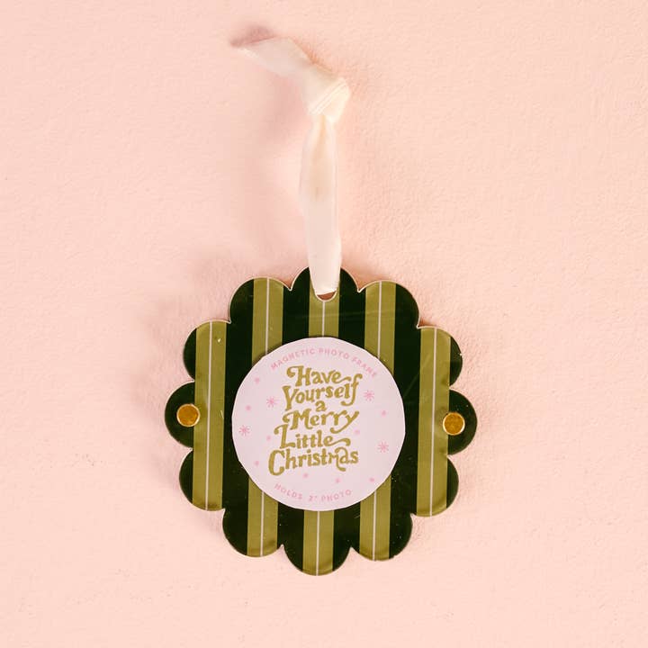 Display your favorite memories in style with this charming Scalloped Round Picture Frame Ornament. Featuring delicate scalloped edges that add a touch of vintage elegance, this ornament doubles as a functional keepsake for any room. Perfect for showcasing cherished photos, it brings warmth and personality to your décor while celebrating the moments that matter most. A delightful way to turn everyday snapshots into treasured decorative pieces.