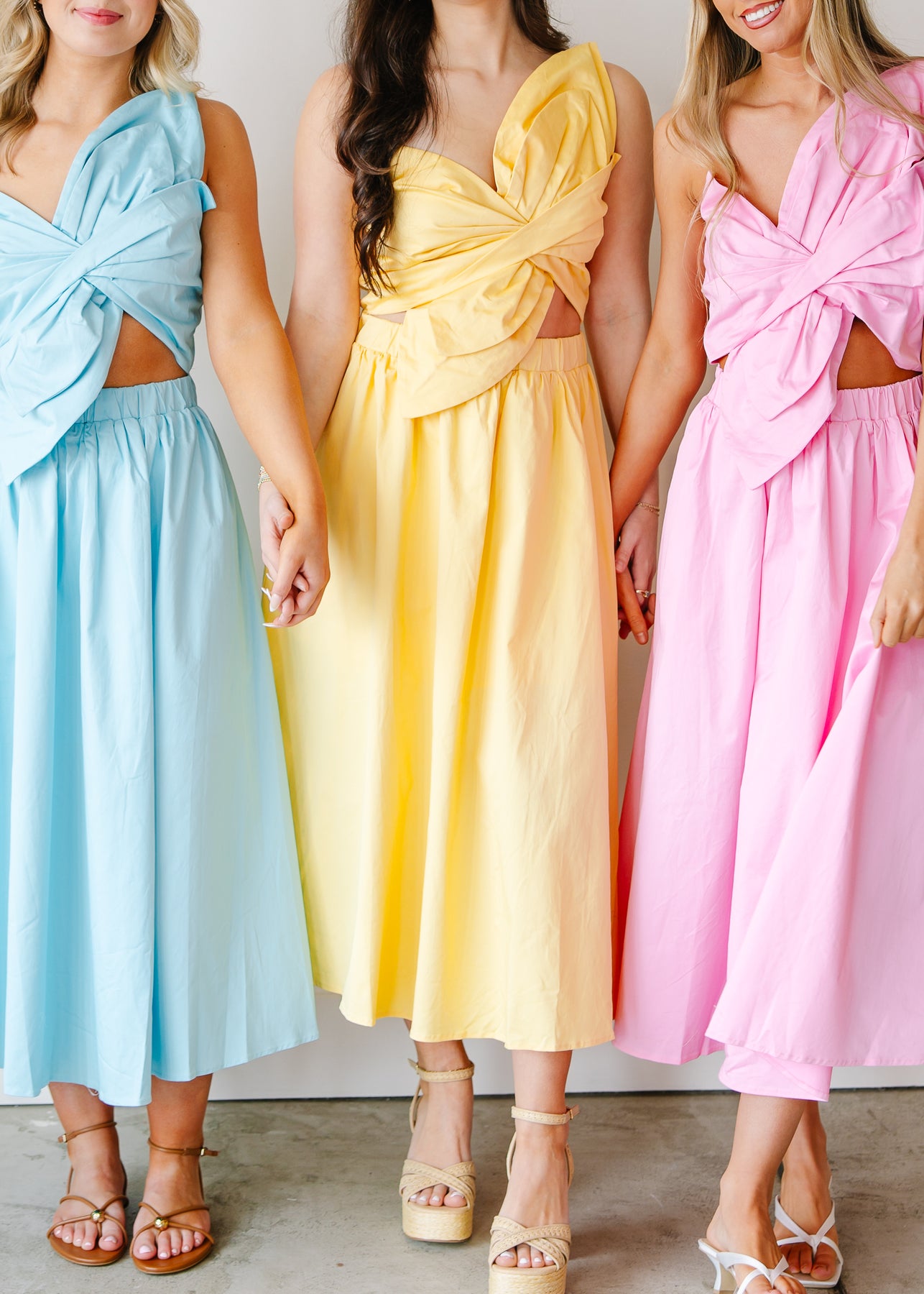 The Shayla One-Shoulder Cutout Dress is effortlessly striking with a touch of modern drama. Featuring a sculptural bow detail, asymmetrical neckline, and side cutout, it’s designed to turn heads with minimal effort. The flowy midi skirt balances the bold top, making it perfect for elevated evenings, weddings, or rooftop soirées. Vivica is your go-to when you want timeless sophistication with a fashion-forward twist.