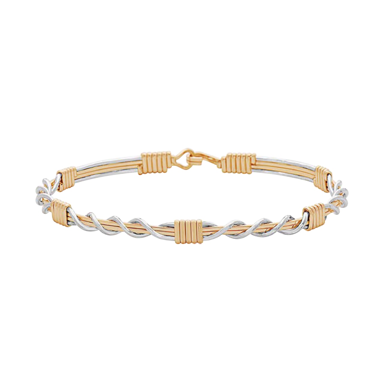 Ronaldo Designer Jewelry features handmade in the USA bracelets that are artfully crafted from Argentium sterling silver and 14k gold artist wire. These simple and dainty bracelets look even better when you start a Ronaldo stack, and add other bracelets. Most women wear a size 7. Use a measuring tape and measure you wrist, then add 1/2 inch to your measurement to find your Ronaldo size.